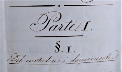 41. Quando nol sia, procurerà di rendersi abile nella lettura dei caratteri meno recenti e men facili, e non si terrà alieno dai lavori, specialmente materiali, che concernono all'ordinamento dell'Archivio, come compilazione d'inventari, schede etc.
